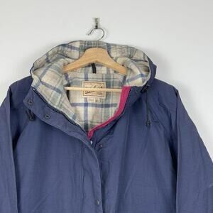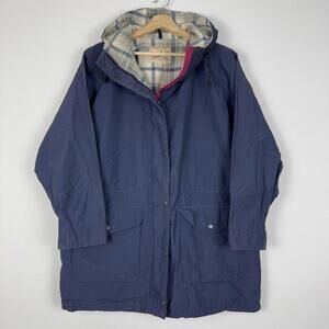 Vintage Woolrich Parka Coat Wool Blend Lined Women 8377 Navy Sz L Plaid Outdoor