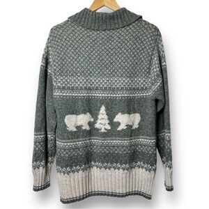 Vintage Woolrich Shetland Wool Sweater Cozy Forest Bear and Tree Pattern Fairisle Nordic