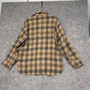 Vintage Woolrich Tan Gray Buffalo Plaid Wool Flannel Shirt Jacket Size M