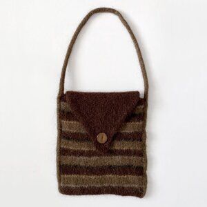 Vintage Wooly Fuzzy Bag Purse Striped Brown Cottagecore Whimsytwee Twee Fairy