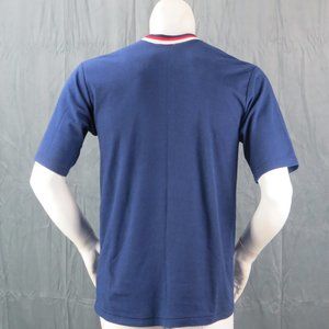 Up for sale is a vintage work shirt. It has a blue base colour with red and white thick trim around the neck. The front of the shirt has a Snap-On Tools patch crested on above a button pen pocket. What a great vintage shirt do not miss out on it.