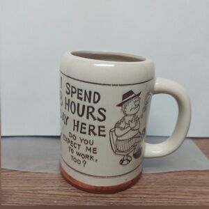 Vintage Work/Office Mug with Saying. "I spend 8 hours a day here. Do you expect me to work too?" 70s. Giftcraft. Made in Japan. Approx 4.5" tall.