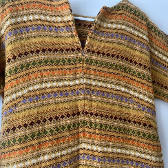Vintage Woven Hippy Dress "Earth Mother" Caftan Maxi Retro 60s 70s Boho Ethnic