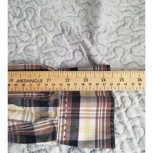 Vintage Wrangler "American Cowboys Choose" Pearl Snap Mens Med. Contrast Stitch. Size tag is missing so based on measurements. Please see pics. Sleeve length is from shoulder seam and length is from bottom edge of collar.