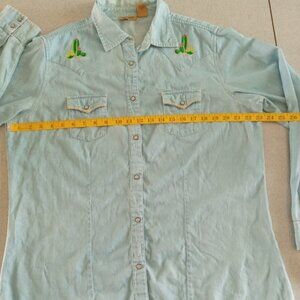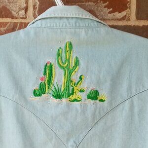 Vintage Wrangler Cactus Embroidered front and back pearl snap denim shirt XL