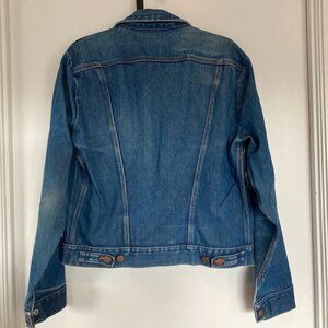 This is my most favourite beloved jean jacket I have ever owned! Sadly, it no longer fits me well and is ready to bring joy to someone else. I believe it's technically a men's jacket (buttons on the right) but anyone could wear this and look hot hot hot.