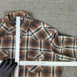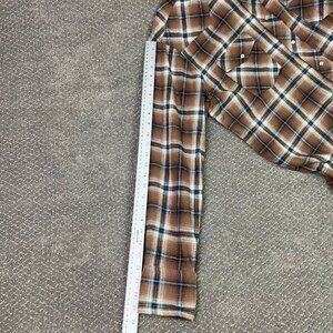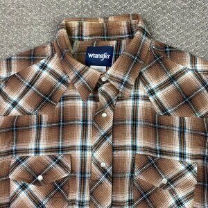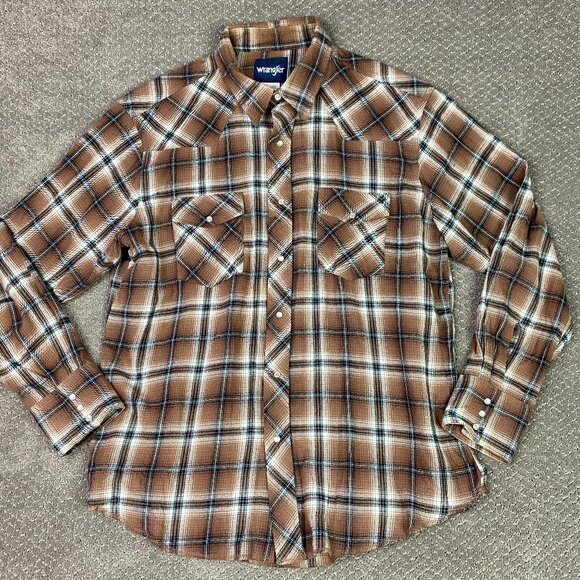 Vintage Wrangler Pearl Snap Flannel Shirt Men's XL Brown Check Plaid Wester