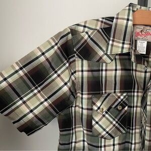 Vintage Wrangler Plaid Short Sleeve Casual Button Down Shirt Snap Buttons Mens