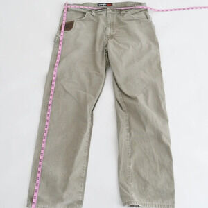Crafted with precision, the green work pants by Wrangler RIGGS Workwear feature a rugged construction reminiscent of classic Carhartt styles. The size 38x34 ensures a comfortable and well-fitted appearance, making it an ideal choice for various manual labor tasks or adding a touch of vintage workwear to your everyday wardrobe.