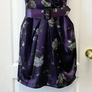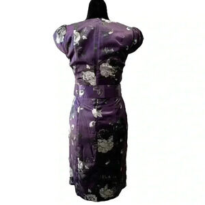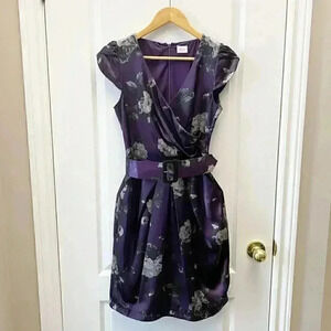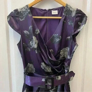 Vintage Wrap Front Dress Purple Grey Floral Satin Belted Pockets Small