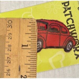 Vintage Wrights VW Bettle Patchworx Iron-On Patch Red Car Bug 2.25" Embroidered