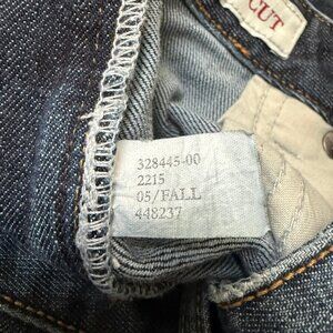 Thick, super high quality denim! Super flattering pocket placement. Subtle fading on the thighs and butt. Button closure, zip fly. Five-pocket styling. Vintage- from 2005.