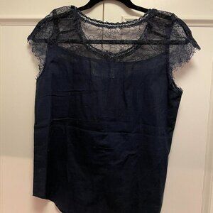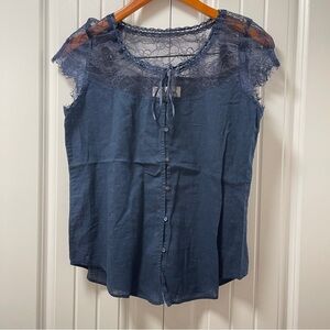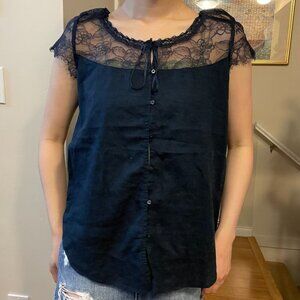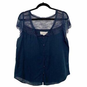 Vintage Y2K Abercrombie Navy Lace Button-Up Blouse - M