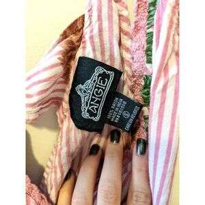 Vintage Y2K Angie Floral Striped Romper Ruffle Hem Boho Beach Festival Cute Sz S