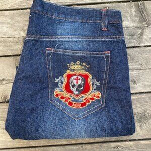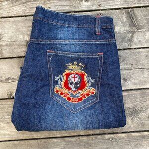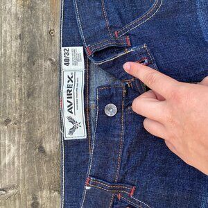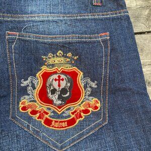 Vintage Y2K Avirex Embroidered Jeans Size 40 'Skull King' Blue