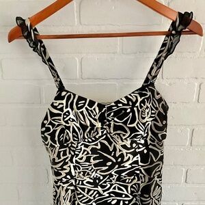 Vintage Tristan Black/tan/off-white Tropical mini bustier dress size 10