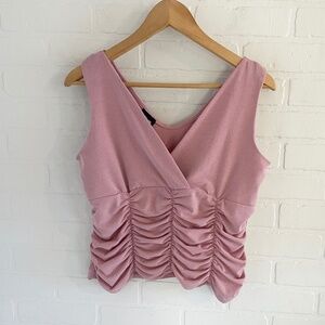 Vintage Y2K Babydoll Tank top Mesh Stretched Ruched Mauve Pink Sz XL