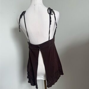 Channel sultry coquette nostalgia with this early 2000s Bebe cami — a romantic babydoll silhouette with soft structure and feminine edge. Features delicate embroidered florals and scalloped eyelet trim, perfect for layering with a shrug or denim mini for that Whimsigoth, Bella Swan, or fairy grunge vibe.