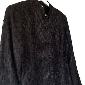 Vintage Y2K Black Lace Blazer Women Size 14 Glam Punk Rock Classic Witchy