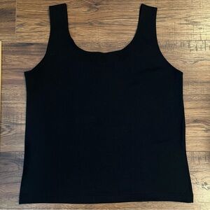 Elegant black sleeveless top with intricate beaded detailing. Perfect for any occasion. Size medium.