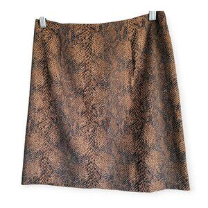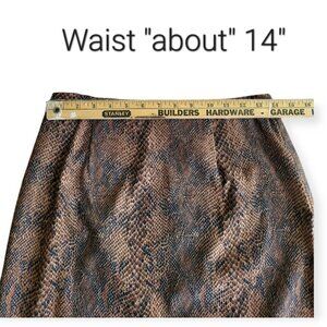 Embrace a Y2K-inspired style with this Briggs vintage brown and black faux suede snakeskin skirt. Sized 8P, but fits like a modern 6P for a chic, stylish fit.