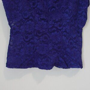 - very cute purple lacy corset or camisole features adjustable straps, lined satin bra area and an allover floral lace pattern with some stretch