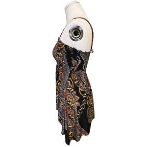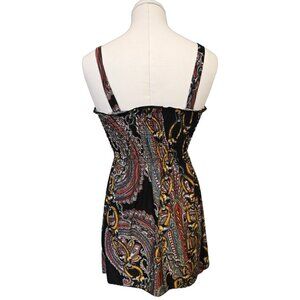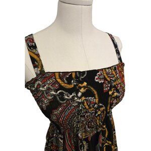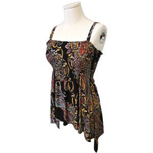 Beautiful patterned top vintage from the early 2000s! This top features a smocked top and an asymmetrical hem. The fabric is stretchy and the straps are not adjustable. It is in excellent condition!