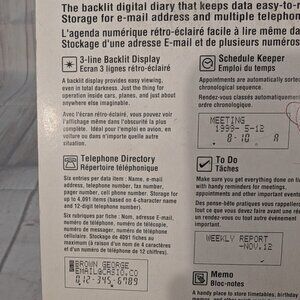 Add a touch of retro tech to your collection with this vintage Casio SF-3600 Digital Diary. Perfect for a Y2K aesthetic or a collector of classic electronics, this iconic gadget features a sleek black design and a signature backlit illuminator display. The built-in digital diary and contact management functions are perfect for anyone who appreciates the nostalgia of early 2000s technology. Whether you're a tech enthusiast, a fan of the Y2K trend, or simply looking for a unique conversation starter, this Casio SF-3600 is a rare find. It's in excellent pre-owned condition and ready to be the next standout piece in your wardrobe or collection.