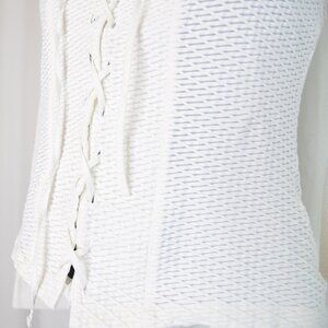 Gorgeous white Y2K vintage textured blouse from Rayure Paris. Cropped lace up corset style with dramatic collar detailing.