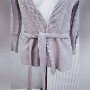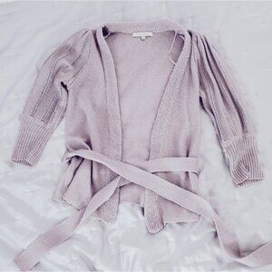 Vintage Y2K Costa Blanca Tie Waist Puff Sleeve Cardigan- Light Taupe/Lilac- XS