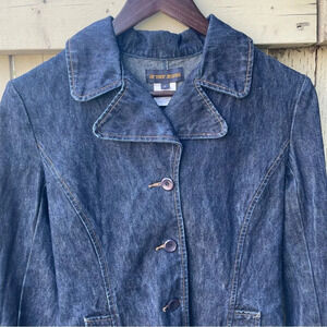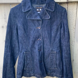 Vintage Y2K Denim Blazer Jacket Size Small Dark Wash Blue Jean Cotton