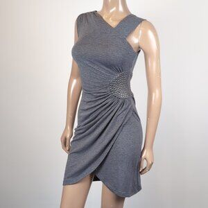 Vintage Y2K Dynamite Faux Wrap Dress Studded Gathered Asymmetric Mini Bodycon