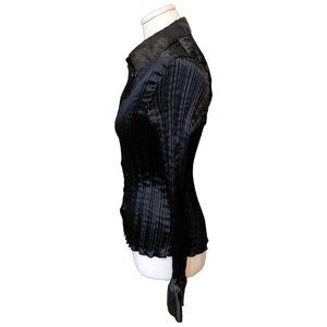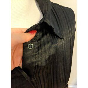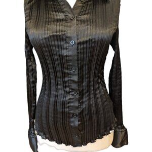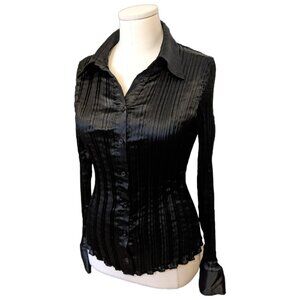 Vintage Y2K FMX Black Satin Pleated Blouse Gothic Witchy Vamp Fall Sz M