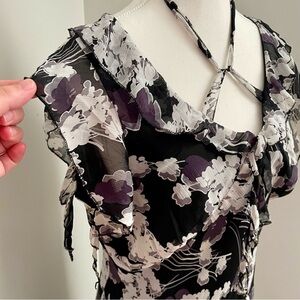 Style tags: Y2K, vintage, whimsigoth, goth, grunge, fairy grunge, fairycore, chiffon, flowy, bohemian, ruffle, floral