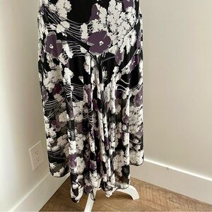Vintage Y2K Flowy Ruffle Drop Waist Whimsigoth Fairycore Midi Length Dress. Tie string details, can be tied various ways or tucked inside. Black and white floral print. Dropped waist. Flutter sleeves. Size XXXL but vintage sizing, fits more like an XL. Check measurements below to ensure fit. Excellent condition.