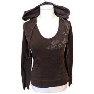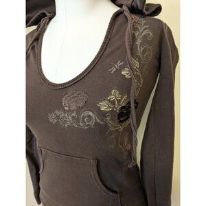 Vintage Y2K Garage Brown Embroidered Hoodie Sweatshirt Fairy Grunge Fitted Sz XS
