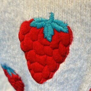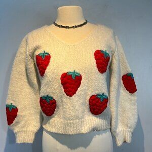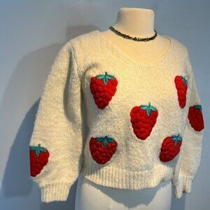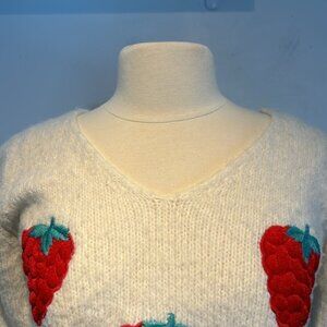Vintage Y2K Golden days Paris White sweater with strawberry appliqué size small