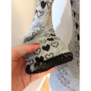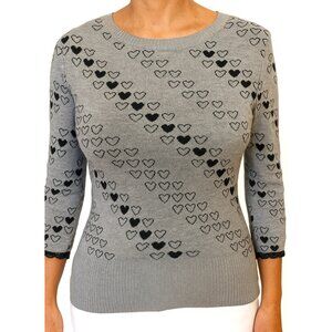 Vintage Y2K Grey Heart Sweater 3/4 Sleeve Cute Romantic Fall Crew Neck Sz S