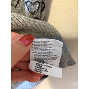 Super cute grey sweater vintage from the early 2000s! This cute sweater features little hearts all over and button detail on one of the shoulders. The fabric is quite thick and is somewhat stretchy. It has normal wear (pilling) but no rips or stains. Overall, it is in good condition!