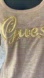 This vintage Y2K t-shirt features an embroidered Guess logo with sequins surrounding it, shimmering material and puff sleeves. It would look perfect with low rise Y2K flare jeans.