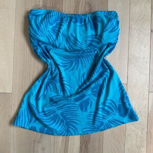 Classic 2000s tube top with a bold blue hibiscus and palm leaf print. Lightweight with a soft stretch, this piece gives serious beach day or festival vibes. Great worn as-is or layered.