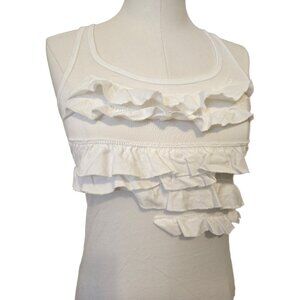 Adorable Y2K white ruffle tank top by Hollister vintage from the early 2000s! This top features cascading ruffles, a racerback style, and embroidered Hollister logo. It is in excellent condition!