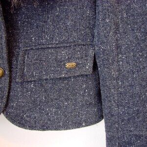 Vintage Y2K Jacket Blazer Guess Wool Blend Faux Fur Detachable Collar ~ Size Small ~ NWOT = NEW without Tags ~ 50% Wool, 35% Polyester, 15% Ramie. Lining: 97% Polyester, 3% Spandex. Faux Fur: 49% Modacrylic, 36% Acrylic, 15% Polyester