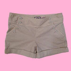Vintage Y2K Juicy Couture Beige Chino Mini Shorts With Buttons Size 6 Mid Rise