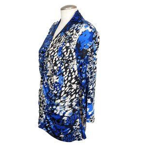 Vintage Y2K Laura Ashley Womens L Top Animal Print Blue Ruched Front Sparkle