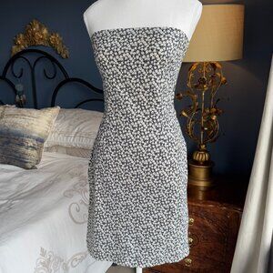 Vintage Y2k (late 90s-early 00s) black with white and light blue daisy print tube dress, size S from Le Chateau. 97% cotton 3% spandex nice stretchy material. Great vintage condition. Bust measures 15 inches laying flat, waist measures 13.75 inches flat, hips 17 inches flat, length from bust to hem is 28.5 inches. Cat friendly, nonsmoking home.