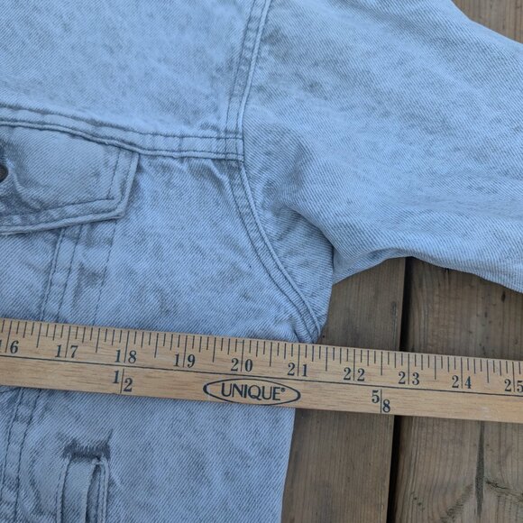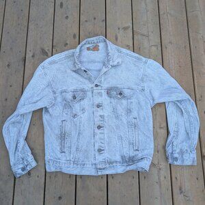 Add a piece of timeless Americana to your wardrobe with this vintage Y2K Levi's bomber jacket. This men's size medium jacket is a classic blue denim with a stylish light wash. The iconic collared silhouette and retro design make it a must-have for any fan of vintage fashion. Perfect for a casual day out or for adding a touch of nostalgic cool to any outfit, this jacket is a versatile and stylish piece.