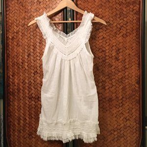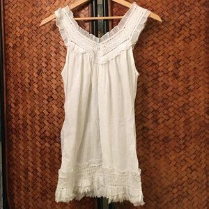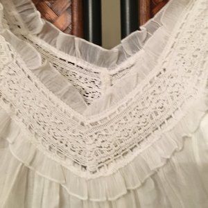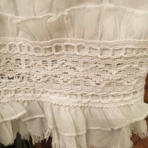 Very good preowned condition, white, ruffled tank top by Passport with lace details and plenty of ruffles. Very cute.