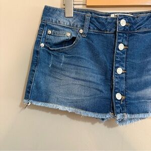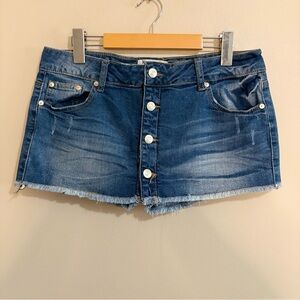 Vintage Y2K Low Rise Denim Skort Button Up Front Frayed