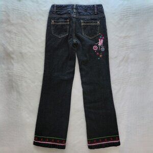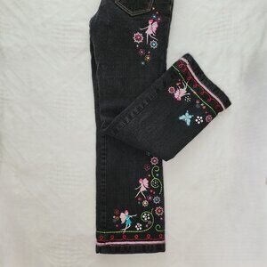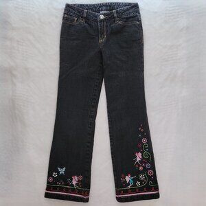 Very Rare and Unique Retro/Vintage Lulla Bette Jeans for Girls with a full top to bottom fleece lining. Size 10 Girls. Embroidered with fairy art and rhinestone accents. Made in Canada by Vancouver company that went default in 2011. Warm and comfy to boot, as the lining makes them so comfortable! Cotton(denim outside) and Polyester(inside fleece). Great to excellent like new really condition. Pleasemum.com. Has adjustable inner straps too. 7 inches rise aprox. 25.5 inches waist aprox. 25 inches inseam aprox. and 32. 5 outseam aprox.